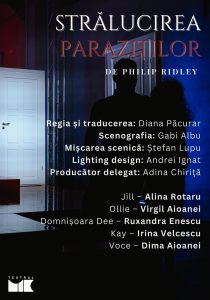Prima producție scenică din România a textului Strălucirea paraziților de Philip Ridley, tradus și montat de Diana Păcurar, cu scenografia semnată de Gabi Albu, la Teatrul Mic, dezvăluie prin umor negru și satiră incisivă, până unde sunt dispuși să meargă oamenii atunci când satisfacerea nevoilor se transformă în ambiții extreme. Prezentat într-o manieră provocatoare și hilară ca o spovedanie în fața publicului, spectacolul STRĂLUCIREA PARAZIȚILOR aduce în prim-plan diferența dintre clasele sociale, credința și sacrificiile care pot împinge oamenii dincolo de limitele normalității.
